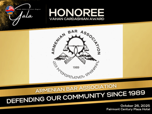 Los Angeles, CA – The Armenian National Committee of America – Western Region (ANCA-WR) is proud to announce that the Armenian Bar Association will be honored with the prestigious Vahan Cardashian Award at this year’s ANCA-WR Gala Banquet. The award celebrates the Armenian Bar Association’s enduring commitment to legal advocacy, human rights, and the pursuit of justice for the Armenian-American community and the Armenian Nation.