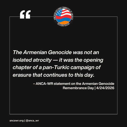 This April 24, the Armenian National Committee of America-Western Region (ANCA-WR) rises to honor the 1.5 million Armenians systematically exterminated by the Ottoman Turkish government from 1915 to 1923 – and to demand, with unwavering resolve, that the world finally move from acknowledgement to accountability.